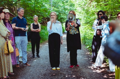 Den Wald im Zeichen des Staunens zum Klingen gebracht...und so sitzt man entspannt unter dem Blätterdach und lässt sich fallen in die vielstimmig kontemplative Poesie einer Klangreise zwischen Geigenklängen und Vogelgezwitscher.Kronen Zeitung, 9. Juli 2023